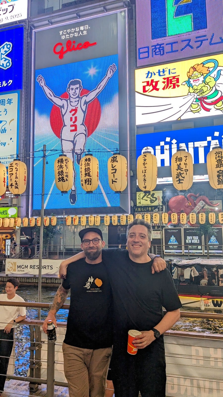 And now, more than a decade later, two distillers who once chased an impossible dream in Chile stood side by side in Dotonbori, Osaka. No glasses, no staged toast, just the neon lights reflecting off the canal, the hum of the crowd, and that same quiet pride we felt in the hotel room. The years had shaped us, but the friendship, like a well-made spirit, had only grown deeper with time.